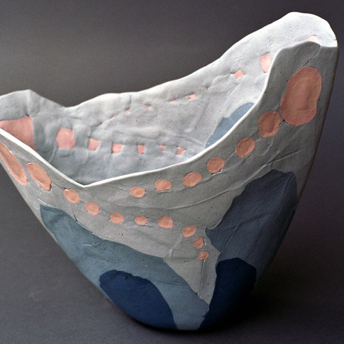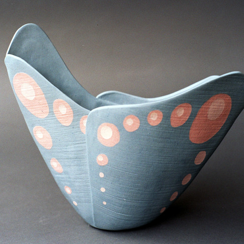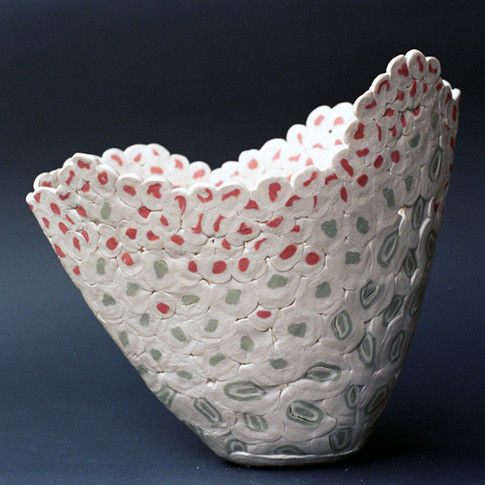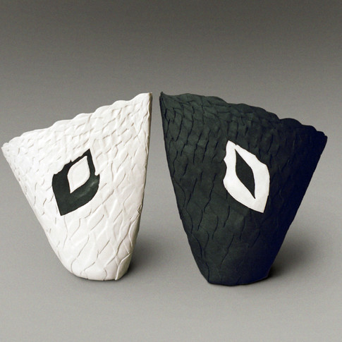 These works are inspired by colorful butterflies as an imitation of a shape and texture of there wings. Vases are made of colored porcelain arranged in a mold. The colored clay allows decoration to be seen inside and outside the vase.